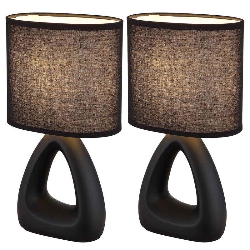 GLOBO Table Lamp Ceramic Black Bedside Lamp Textile Shade Bedroom Lamp Black E14 Socket L x W x H 17 x 10 x 30 cm Set of 2