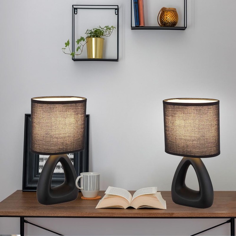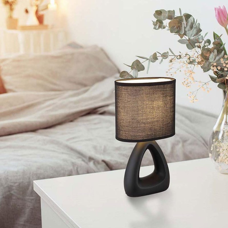 GLOBO Table Lamp Ceramic Black Bedside Lamp Textile Shade Bedroom Lamp Black ...