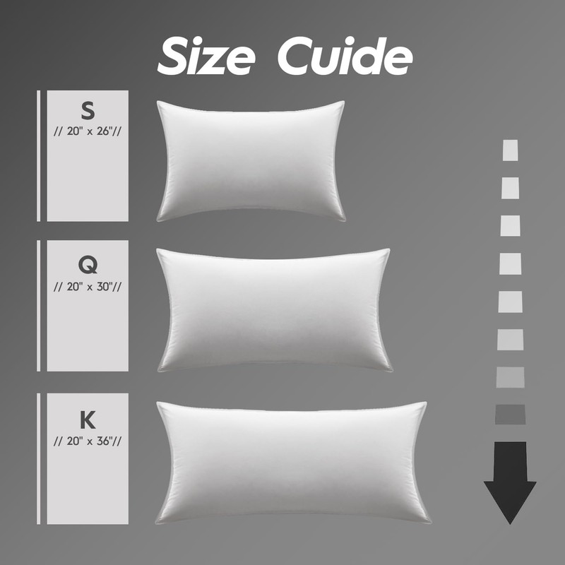 • Versatile Comfort: Select from Standard (20x26"), Queen (20x30"), or King (20x36") sizes to perfectly fit any bed or sleeping style. Perfect for back and stomach sleepers, enjoy hotel-quality comfort at home year-round.