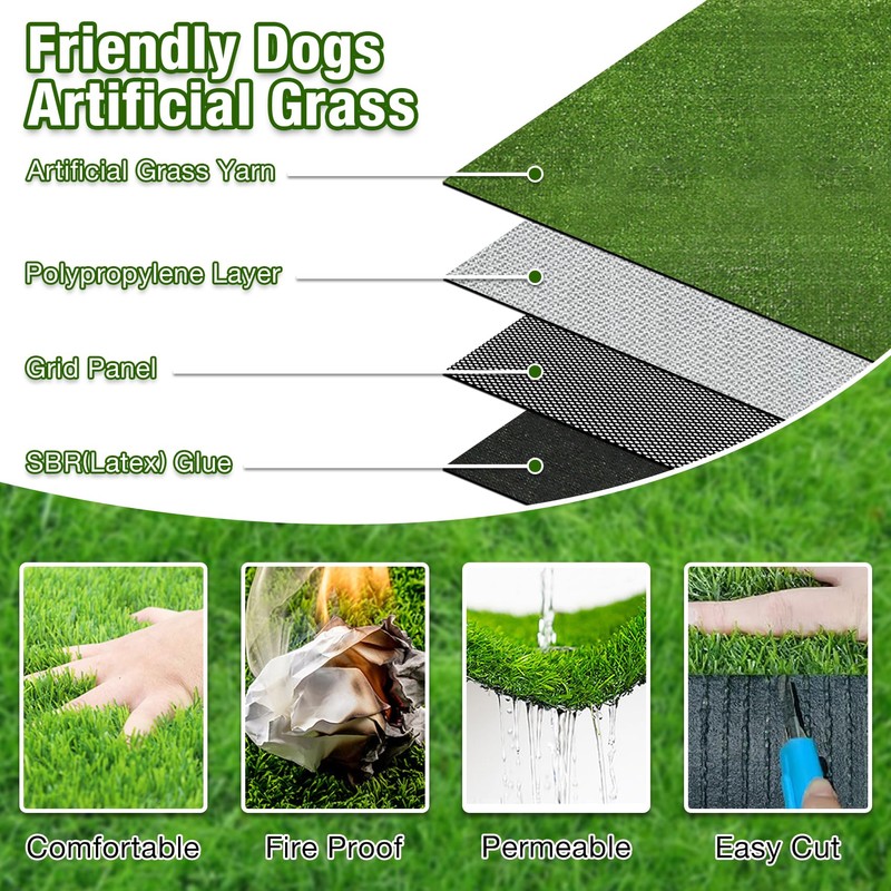 - High Quality Dogs Pee Grass: Made of brand new PP and PE, lead free, our dogs turf grass safe friendly for pets, anti fire, anti uv, forst resistent, stain resistant, waterproof, lightweight, anti-aging, reusable weatherproof