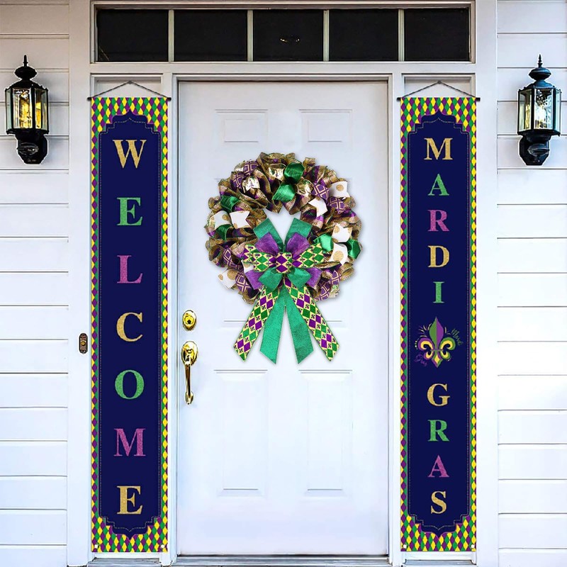 - 【Material】The Mardi Gras Hanging Bow are made of high quality Burlap ribbons, durable for a long time using. The color is not easy to fade, but machine wash is not recommended.