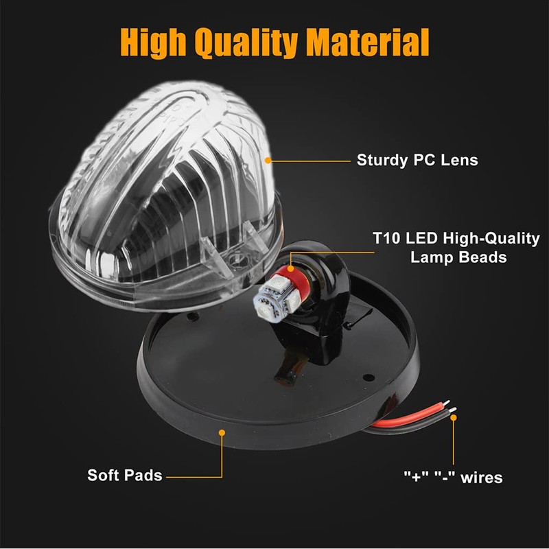 - Pack Includes: 5x Amber Roof Cab Marker Lights with 5 bases (Assembly Kits) + 5x T10 LED Bulbs