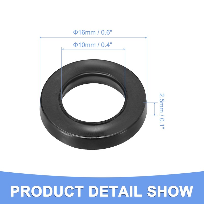 - ●(Rubber Flat Washers Size) - Material: Rubber; Color: Black; Size: M10 x 16mm x 2.5mm (ID*OD*T); Package Included: 10 packs x Rubber Flat Washers