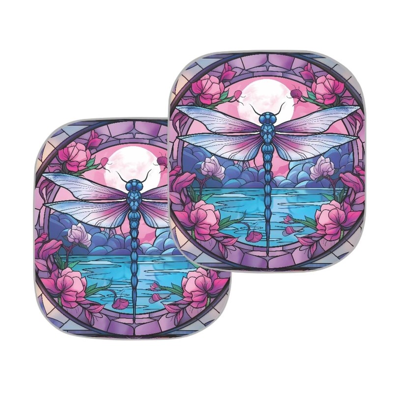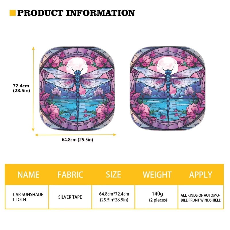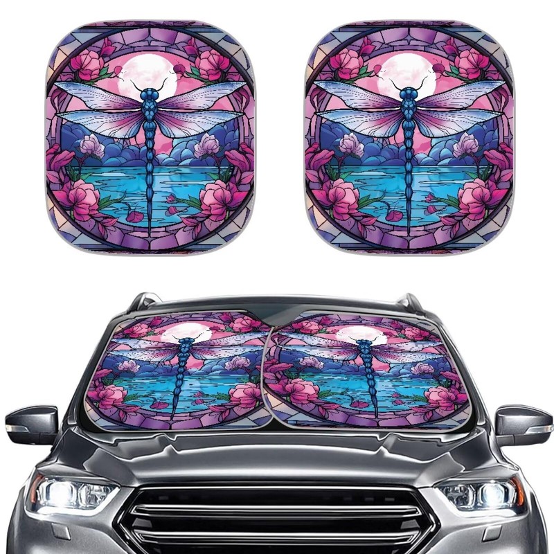 Glomenade Moon Dragonfly Floral Print 2-Piece Auto Windshield Sun Shade for Car SUV Truck, Foldable Vehicle Window Sun Visor Protector