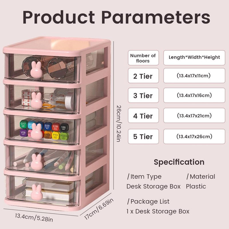 - Large capacity, perfect storage: Description: This desktop storage box has a four-layer spacious drawer design, which can easily accommodate your office stationery, hair accessories, small accessories and other small items. Each drawer can be used independently to help you sort and organize items in life and work, so that the desktop is always tidy and orderly.