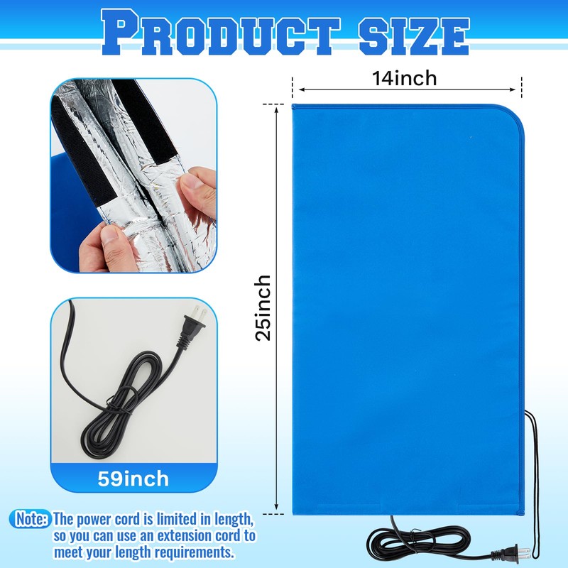 Glooglitter Electric Heated Outdoor Faucet Cover for Winter Freeze Protection 25.2"x14" Heating Hose Bib Covers for Winter, Water Pipe Heater for Garden Lawn Faucet Insulated Spigot Protector, Blue