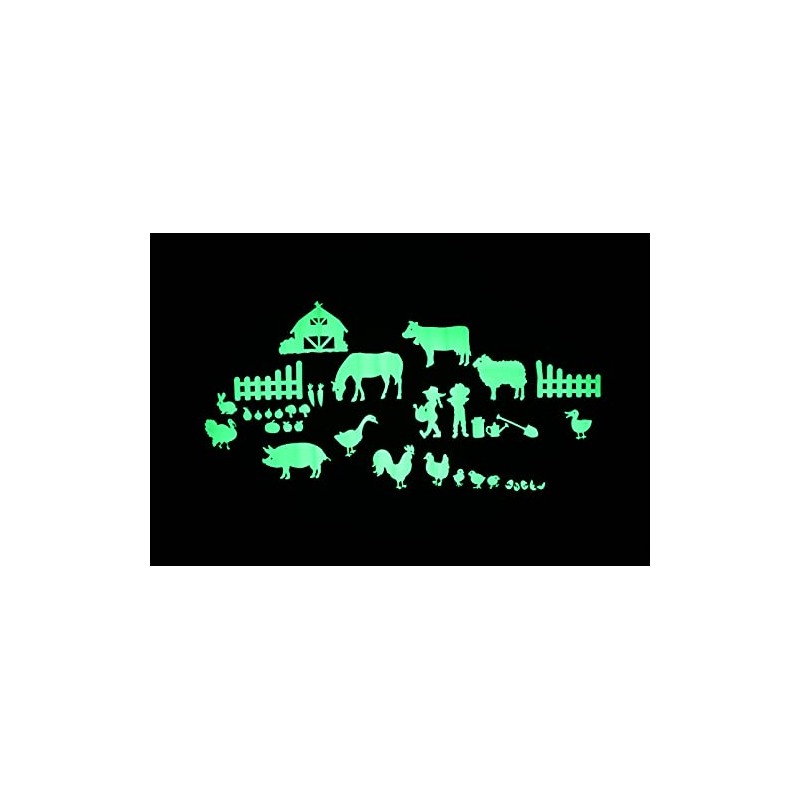 GLOPLAY On The Farm Series (36pcs/Pack), Glow in The Dark Educational Wall Stickers, The Eco-Friendly and Brightest Wall Stickers for Ceiling, Bathtime, Bedroom, Party, Decor