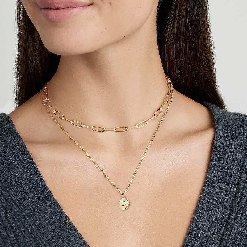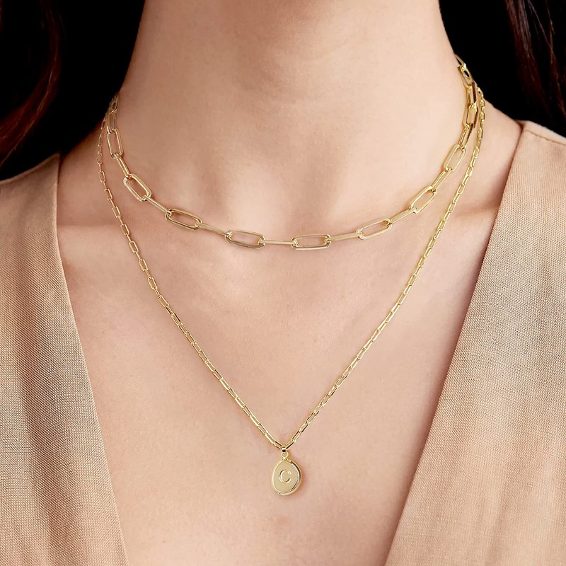 GLOQUAT Layered Initial Necklaces for Women Gold Paperclip Link Chain Coin Necklaces for Women 14K Gold Initial Necklaces for Women Initial Necklace for Jewelry