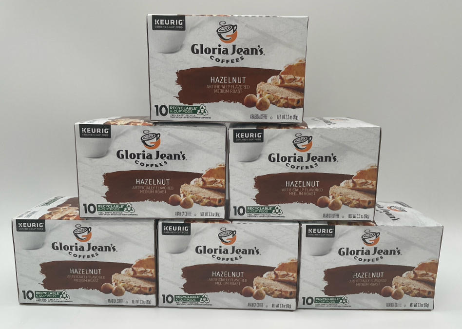 (6) 10 count boxes of Gloria Jean's Medium Roast Hazelnut Keurig K-Cup Coffee Pods (60 pods total)