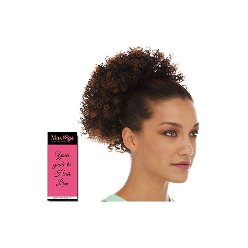 - Glory Drawstring Ponytail Color 4 Dark Brown - Sepia Wigs Tight Spiral Curls Wrap Around Fun Bun Updo Synthetic African American Top of Head Pony Curly Bundle MaxWigs Hairloss Booklet