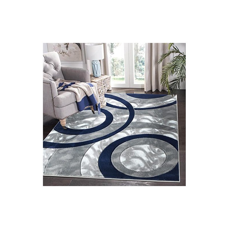 GLORY RUGS Area Rug Modern 2x7 Navy Circles Geometry Soft Hand Carved Contemporary Floor Carpet Fluffy Texture for Indoor Living Dining Room and Bedroom Area