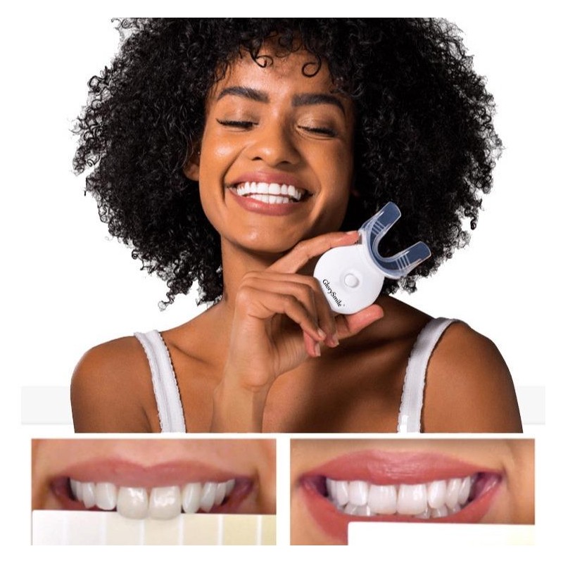 GlorySmile Teeth Whitening Kit with LED Light, 10-Min Fast Whitener, 3 Carbamide Peroxide Gels for Stain Removal from Coffee, Wine, and Smoking