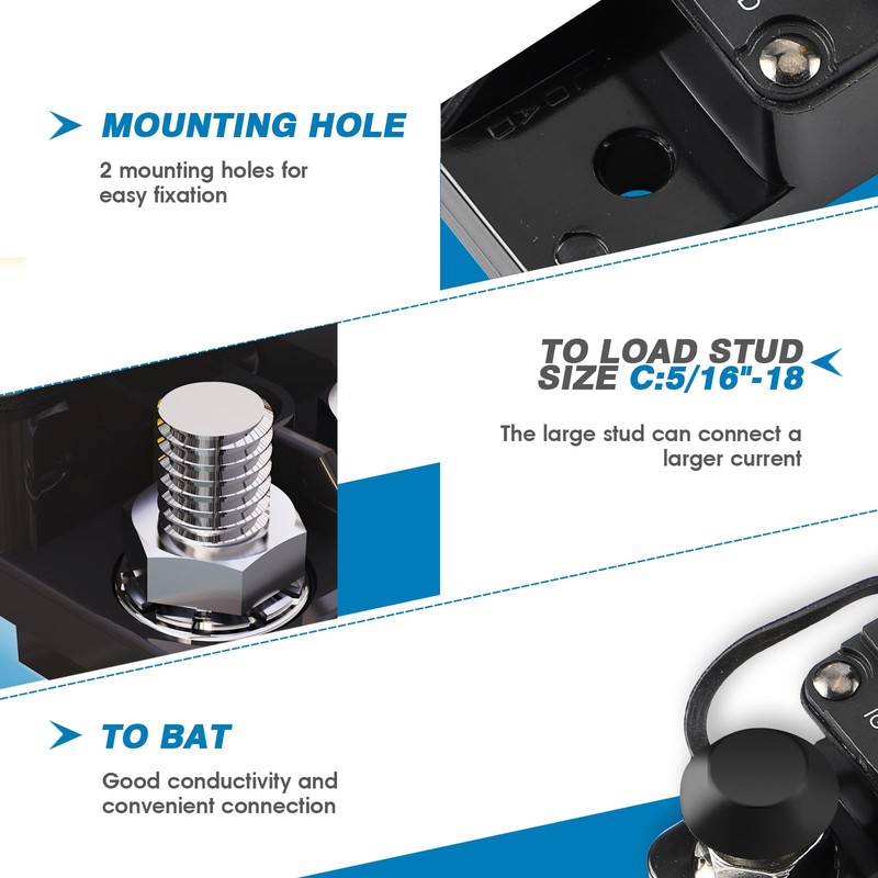 - 25A; 5/16"-18 threaded side by side studs, Extended Surface Mount