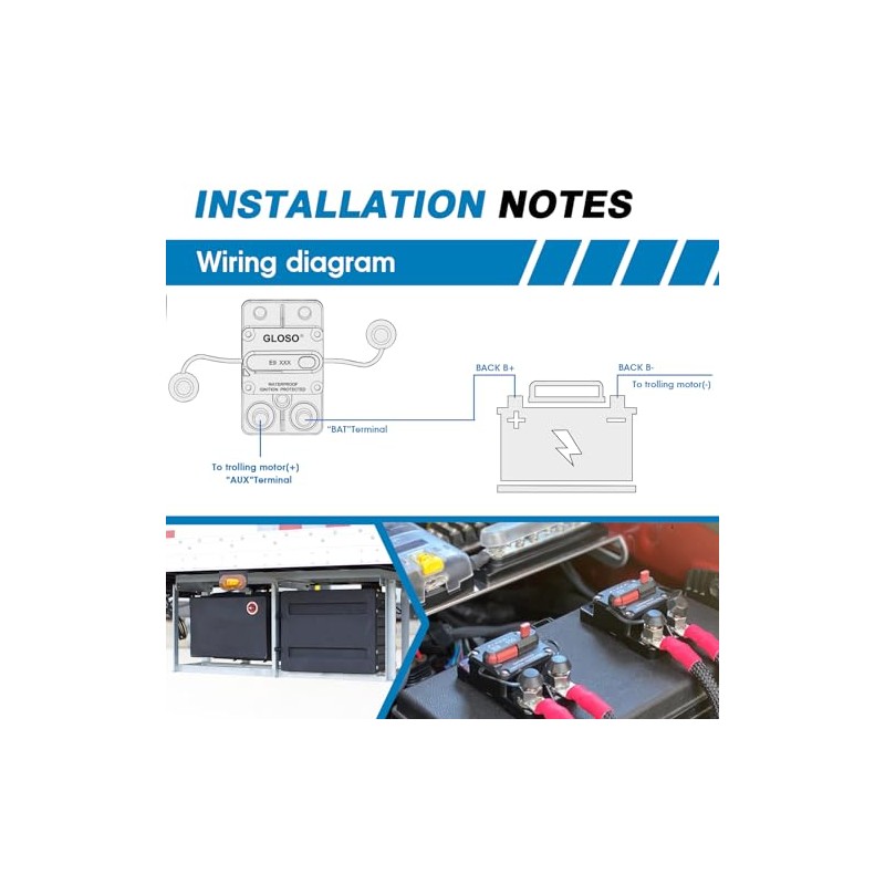 GLOSO GLOSO Circuit Breaker E9C 200A Waterproof Auto Rese Breaker for Car Truck RV Automotive Marine Boat Trolling Motor & Custom Wiring Audio Battery Protection Side by Side Stud IP67 Hi-Amp (200A)