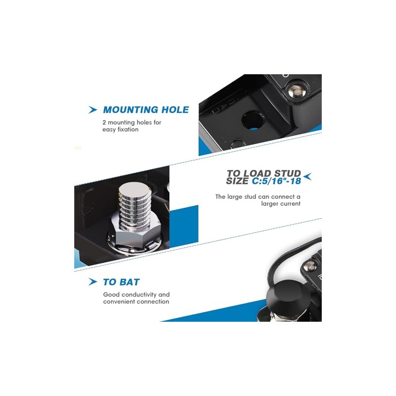 - 50A; 5/16"-18 threaded side by side studs, Extended Surface Mount