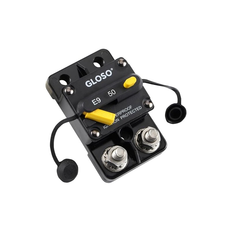 GLOSO GLOSO Circuit Breaker E9C 50A Waterproof Auto Rese Breaker for Car Truck RV Automotive Marine Boat Trolling Motor & Custom Wiring Audio Battery Protection Side by Side Stud IP67 Hi-Amp (50A)