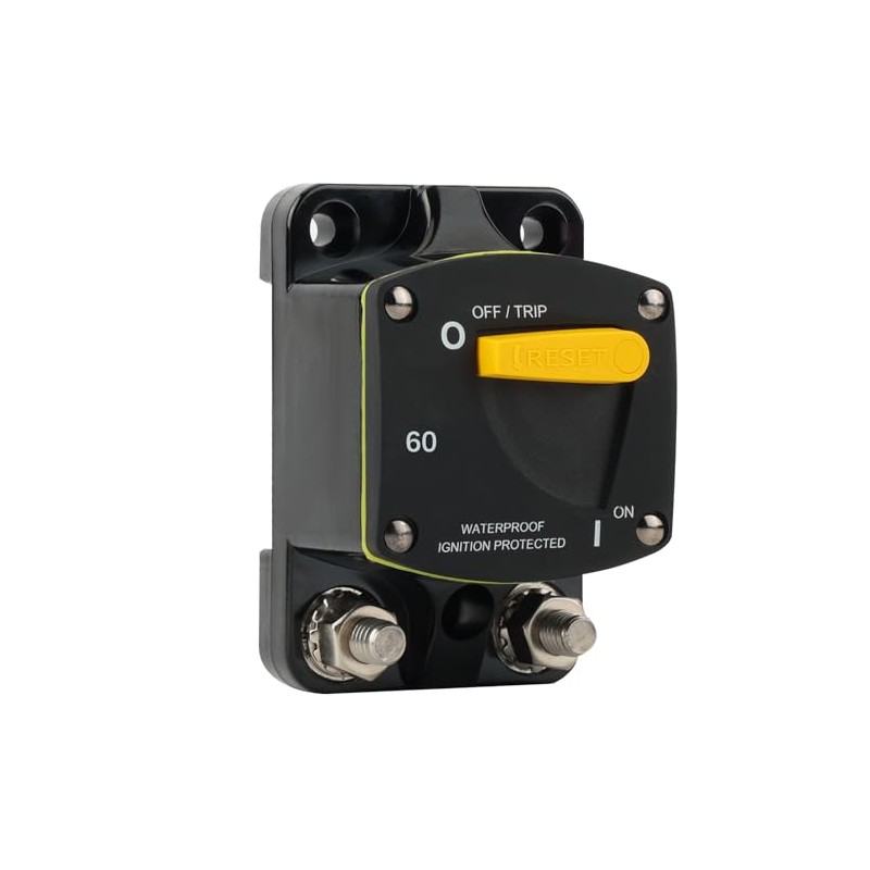 GLOSO GLOSO Circuit Breaker Switches Manual Reset Waterproof Audio Radio Solar System Boat Truck Marine Automotive Stud 5/16 Surface Mount 60A