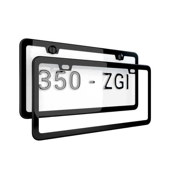 Gloss Black License Plate Frame, Metal Thin Stainless Steel with 2 Holes Screw Cap, 2 Pack (Glossy Black(Mirror Finish))