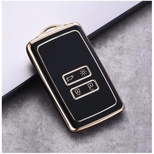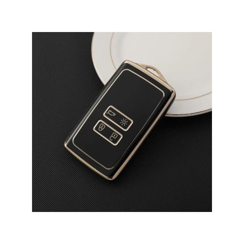 Glossy TPU Key Shell Cover Compatible with Renault Clio V Megane IV Grand Scenic Scenic Kadjar Captur Koleos Dacia Duster 2018> 4 Buttons Car Remote Control Protection Cover Gold (Black - Gold)