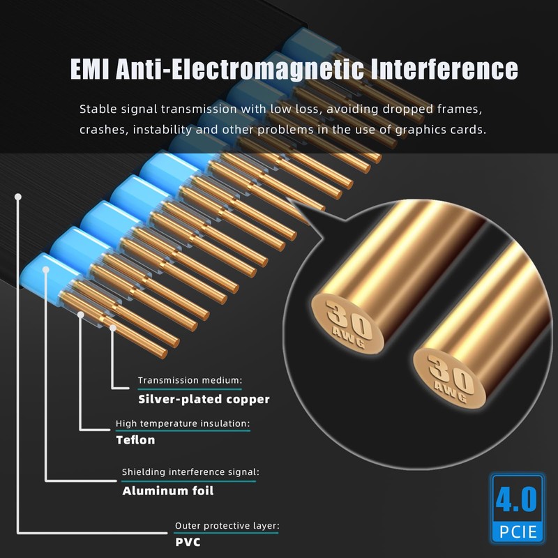 • Several separate ribbon cable design make it softer and more flexible. When the GPU mounting position is shifted a bit, it doesn't affect the performance.