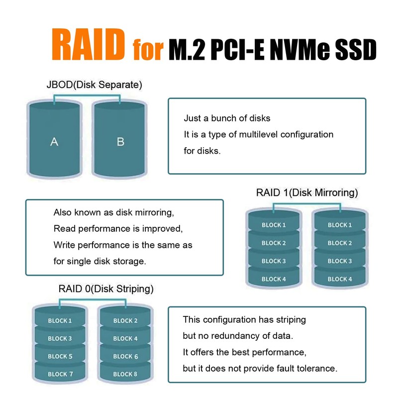- M.2 PCIe RAID in Intel/AMD/Mac: Support M.2 NVMe SSD RAID-on-CPU (VROC) in Intel Platform, but you need to purchase Intel VROC license by yourself. Support M.2 NVMe RAID in AMD Platform. Support Mac Pro 5.1