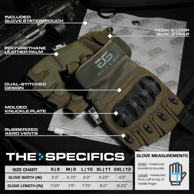 Glove Station The Combat - Fingerless Knuckle Tactical Gloves for Men - Motorcycle Gloves for Tactical Shooting, Airsoft, Hunting, Police Work and Hiking - Green, Medium