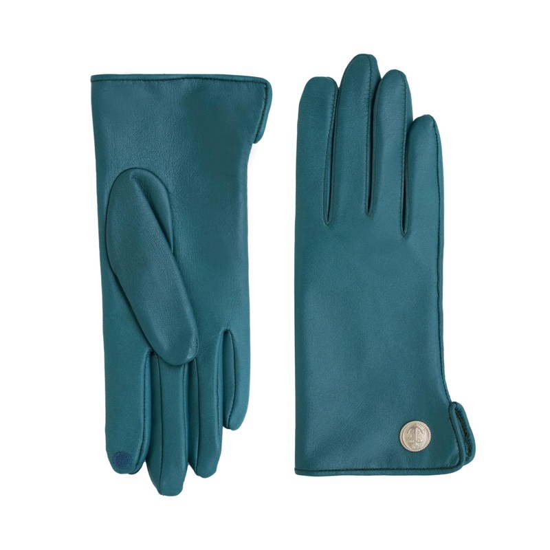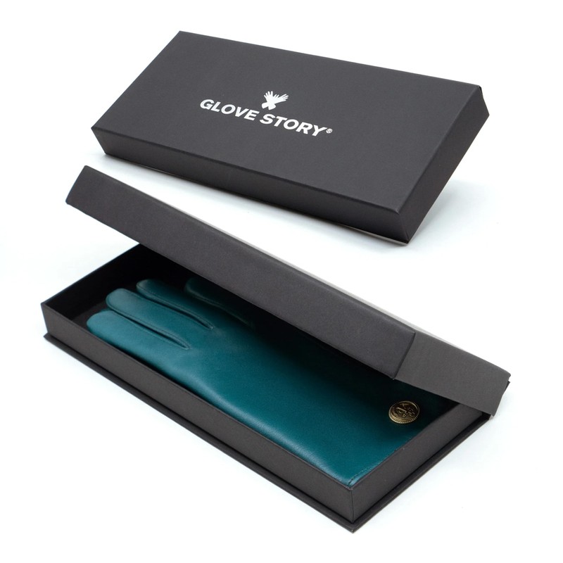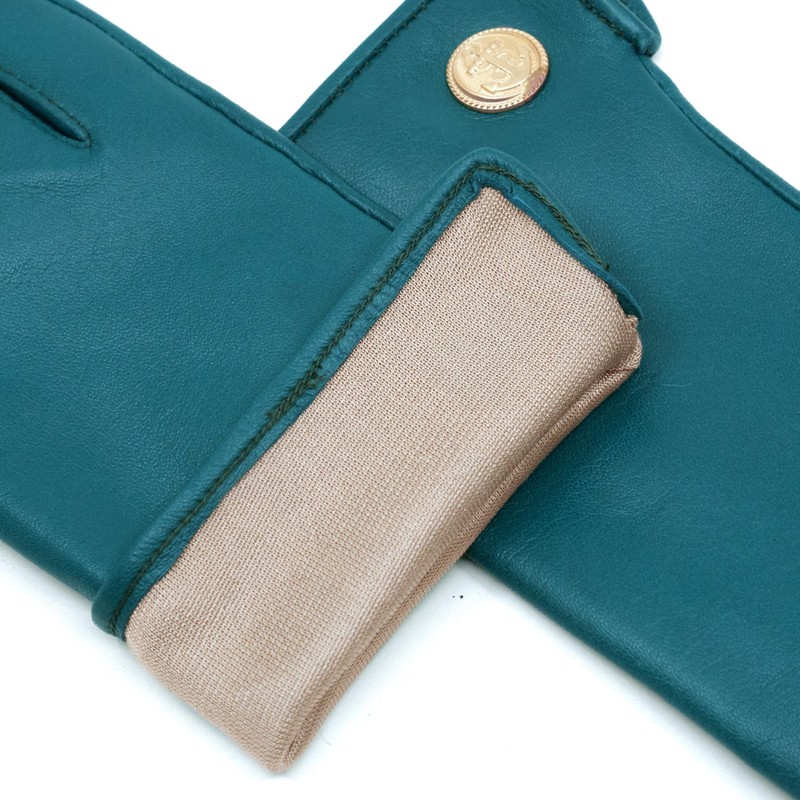 GLOVE STORY Lamb Leather Gloves for Women with 100% Silk Lining and Anchor Button - Elegant, Soft and Comfortable Material - Warm Winter Gloves for Women - Handmade, crystal teal, L