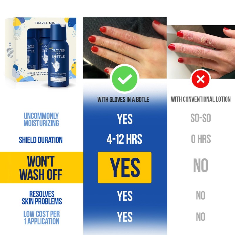 Gloves In A Bottle – Shielding Lotion for Dry Skin, Hand Lotion Travel Size, Protects & Restores Dry Cracked Skin (Travel Mini)