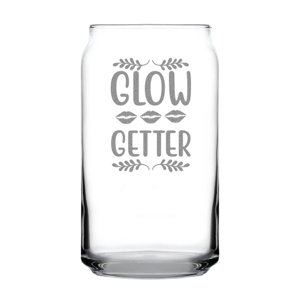 Glow Getter 16oz Can Shaped Pint Glass, Hand Engraved Etched Gift for Her, Unique Motivational Keepsake, Inspirational Drinkware