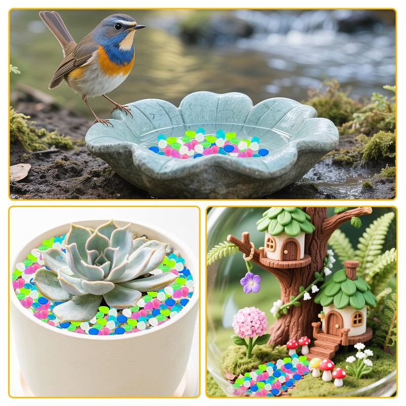 - Glowing Decorative Rocks: Brighten up your space with these versatile and fun decorations! Ideal for fish tanks, aquariums, pathways, driveways, flower beds, fairy gardens, plant pots, glass vases, backyards, fish ponds, and other similar applications. They create a magical nighttime effect—whether indoors or outdoors. Let your imagination shine and transform any space with these enchanting glowing rocks!