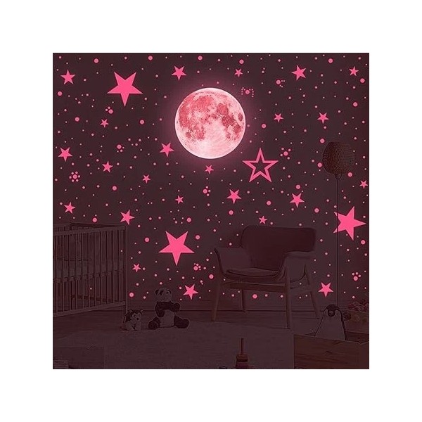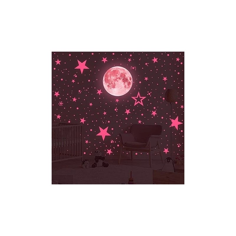 ❤️ 30cm luminous Moon with 407pcs dots and 27pcs stars realistically glowing in the dark! You can create the patterns as you like on the smooth surface. these 3D Moon and stars will help you create a fantastic starry sky in the room, this glow in the dark moon and stars decoration set will make your room a real night sky. In the dark the moon and stars shinning and the room becomes a starry shiny sky. Create glows in the dark