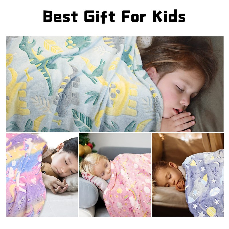 - 🚀【Glow in The Dark Blanket】: You will get one blanket that glow in the dark,there are prints of space,dinosaur,unicorn for your choice,glow in the dark which is mysterious and interesting for kids.