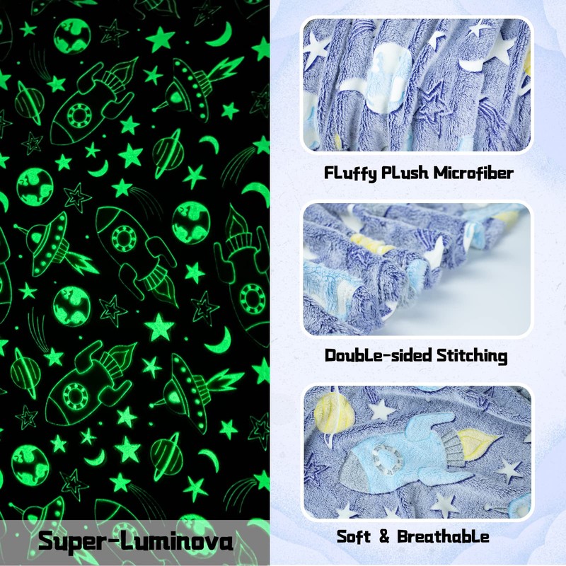 - ✨【Upgraded Luminous Blanket】: This special glow in the dark blanket is your child's best partner at night, it can absorb and store light energy to glow for a long time, This comfy, cozy, and soft throw blanket provide the best fade & stain resistance, and glowing in the dark, mysterious and interesting.