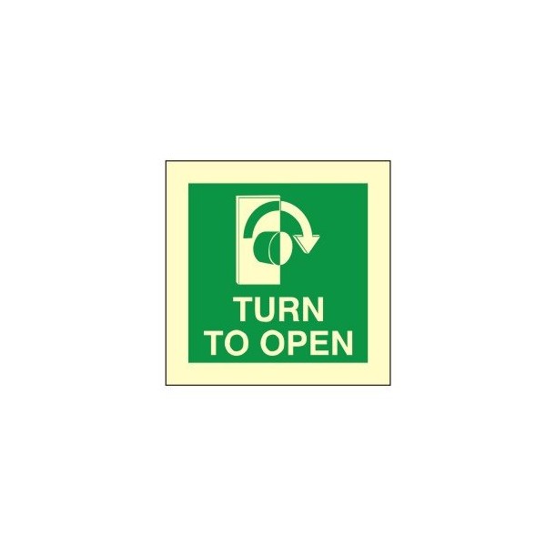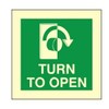 Glow In The Dark Turn To Open Right Sign 100mm x 100mm - Rigid Plastic