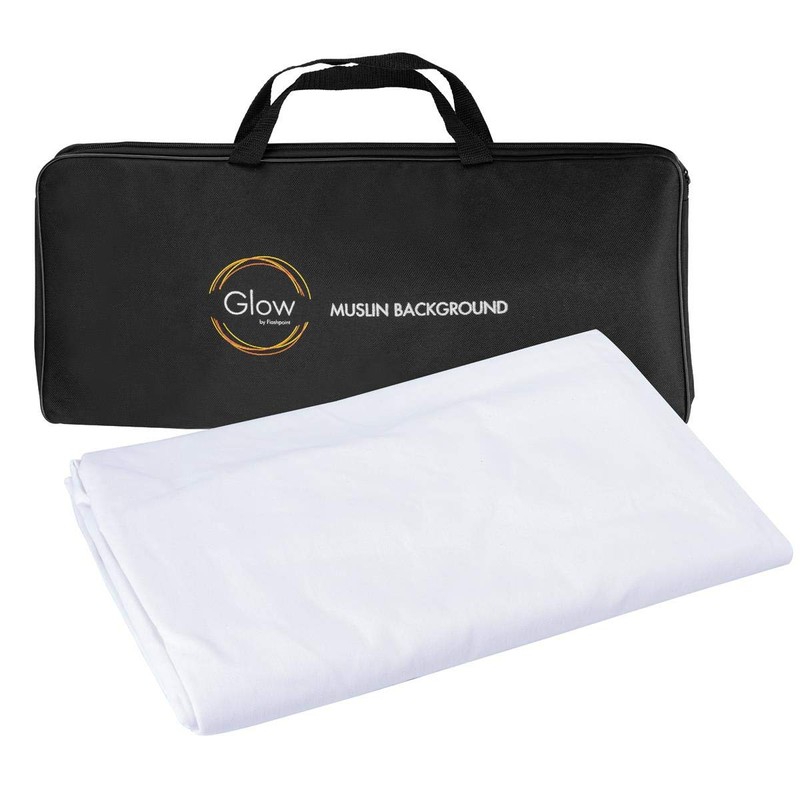 TheGlow 10x10' White Muslin Backgroundis a seamless 100% cotton non-reflective fabric richly colored material with a sewn edge on all sides. This length is ideal for full length shot of children and subjects that need continuous, uninterrupted backgrounds. Muslins can be crushed for strong textured background effects, or folded carefully in storage, or rolled on a rod to totally avoid creasing. The background has a sewn 3.5" rod pocket on the top to accommodate a cross pole support system.Lighting plays a large part in the flexibility of this product. A well-directed cross light across the surface, enhances the depth illusion of the rippled, draped or manipulated fabric for strong subject to background separation effects. It matters not which side faces the camera, as the color is thoroughly saturated and evenly finished. Great for still or video photography, the washable fade-free fabric takes a beating and comes up for more and more luxurious use.This white version is unique for a secondary function. Hung horizontally, behind the photographer, it serves as a blind for sensitive items that reveal and absorb reflected light, like textured oil paintings, and keeps the colors rich, without influence from other sources of tint.