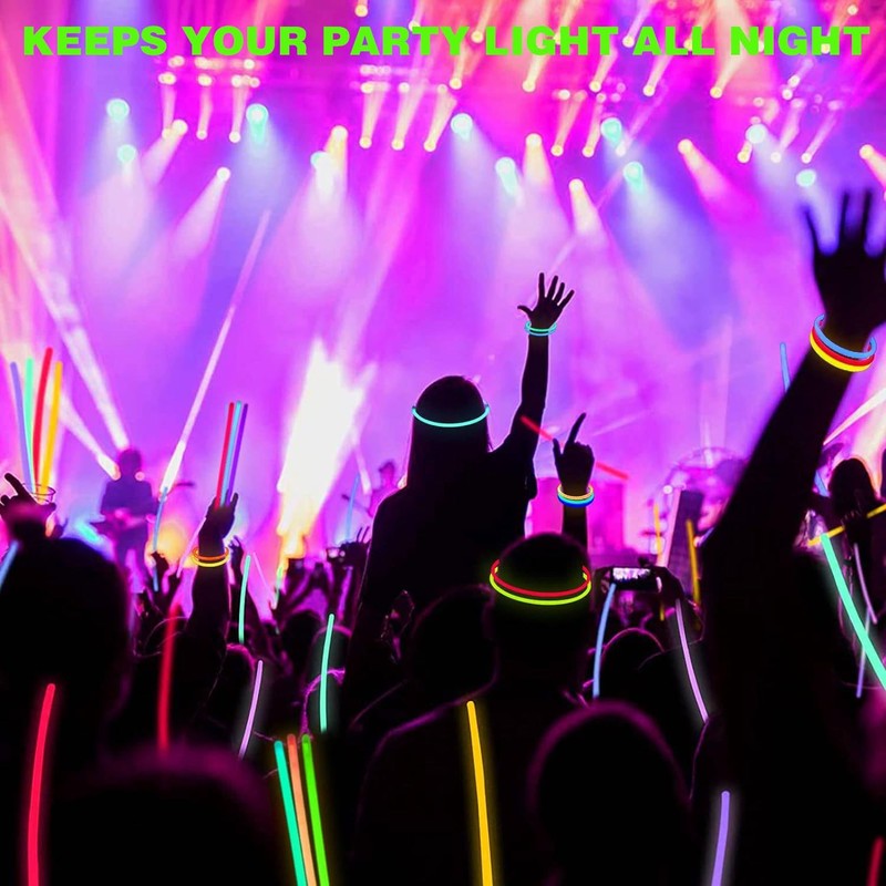 - ⭐【Glow Sticks Party Supplies】You can make luminous bracelets and luminous necklaces or use the glow sticks for party decorations at dance. Our glow stick has a light duration of up to 8-12 hours, perfect for glow in the dark parties. The glow stick also make excellent party favors, Halloween decorations, balloons decorations and luau party decorations. Additionally, they can be included in best survival kits for quick decoration.