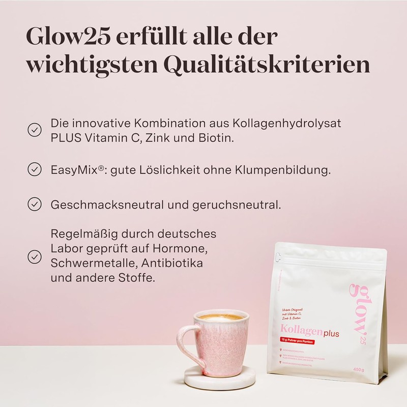 Proven Benefits: Enjoy the long-time advantages of Glow25 collagen, including its neutral taste and excellent solubility in both cold and warm drinks.