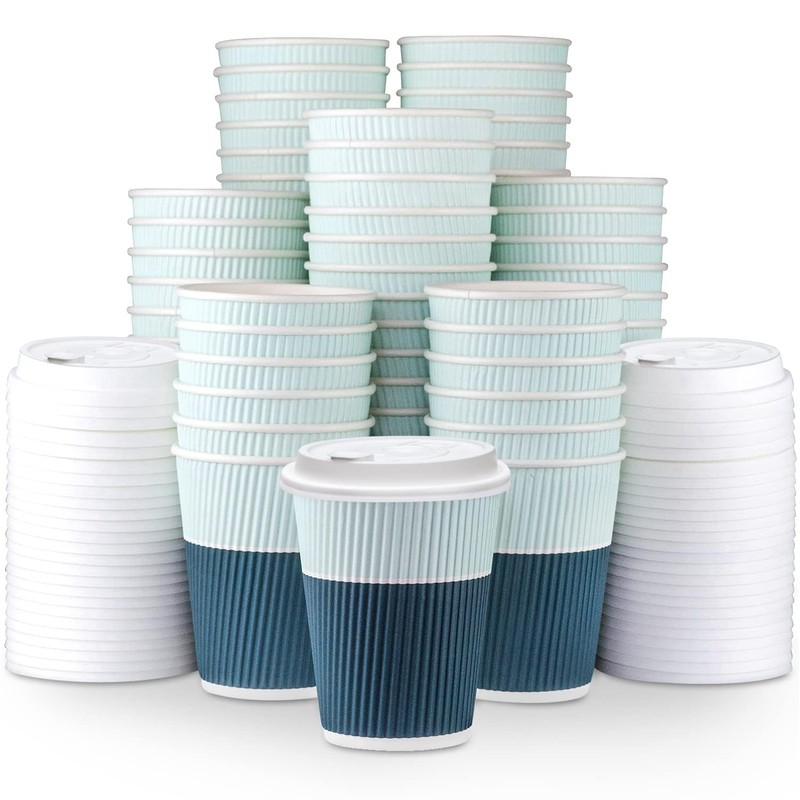 Glowcoast Disposable Coffee Cups With Lids - 12 oz To Go Coffee Cups (80 Set) With Sturdy Lids Prevent Leaks! Paper Hot Cup Holds Shape With Hot, Cold Drinks. Ripple Cups Protect Fingers from Heat!