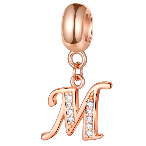 Letter M Charms Alphabet Beads Fit Pandora Women's Bracelet, Rose Gold Initial A-Z 925 Sterling Silver Pendant Necklace with Clear CZ, Gifts for Mothers / New Mother / Stepmother