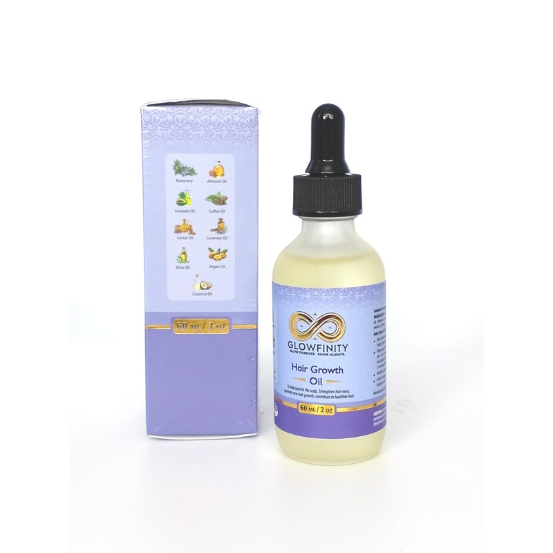 Product descriptionGlowfinity Hair Growth Oil is a lightweight, nourishing blend designed to support scalp health and hair vitality. Enriched with natural oils like castor, almond, coconut, argan, and lavender, this formula helps moisturize the scalp, reduce dryness, and strengthen hair from the roots. Ideal for all hair types, it can be used as a pre-wash treatment or left overnight for deeper nourishment. Its non-greasy texture absorbs easily, making it a practical choice for those seeking a hassle-free hair care routine. With regular use, it supports healthier-looking, smoother hair that feels soft and revitalized. Whether you're targeting dryness or simply maintaining a self-care routine, this oil fits seamlessly into any hair regimen.Safety WarningFor external use only.