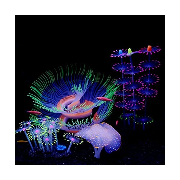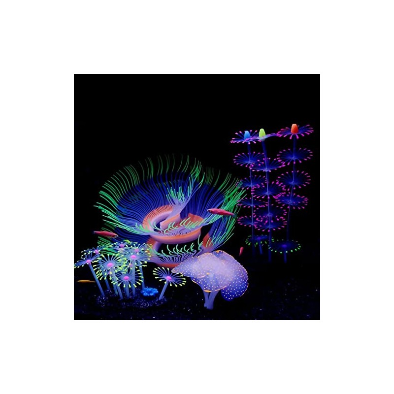 - 【HICHQUALITY MATERIAL】The luminous aquarium plants are made of silicone resin and are equipped with plastic suction cups and have The stable ceramic substrate, non-toxic, durable,and colorful