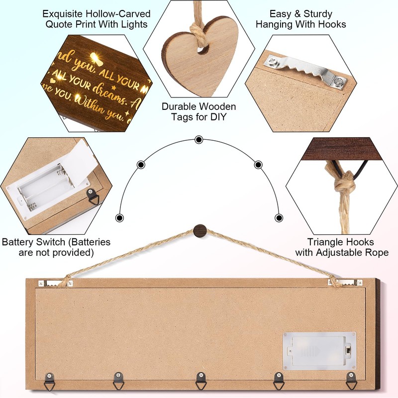 - EYE-CATCHING DECOR & ENJOY DIY: Enjoy DIY with family and display favorite records. Hang the board with those photos in the corner of a room, turn on the light and all glows inviting fairy light, adding warm atmosphere to a room, creating a unique focal point and evoking fond memories, definitely eye-catching and gorgeous. A perfect graduation gifts to illuminate graduate’s heart!