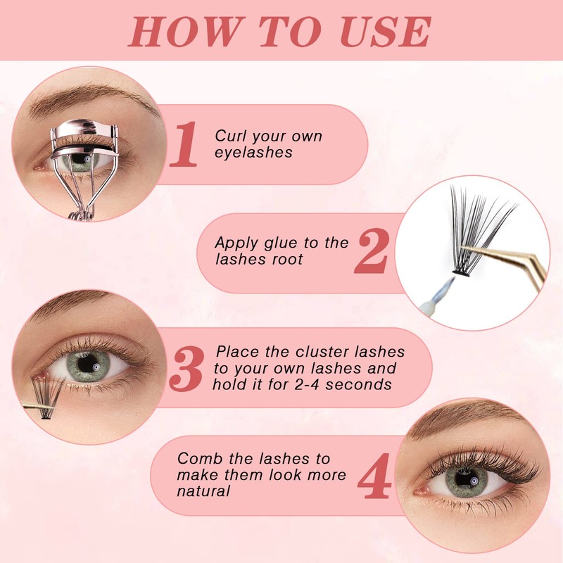 - DIY cluster eyelashes at home: DIY eyelashes create your perfect everyday look, which makes you more charming, beautiful and confident. Just enjoy it, save money! Applying cluster eyelashes takes less time. Save time!