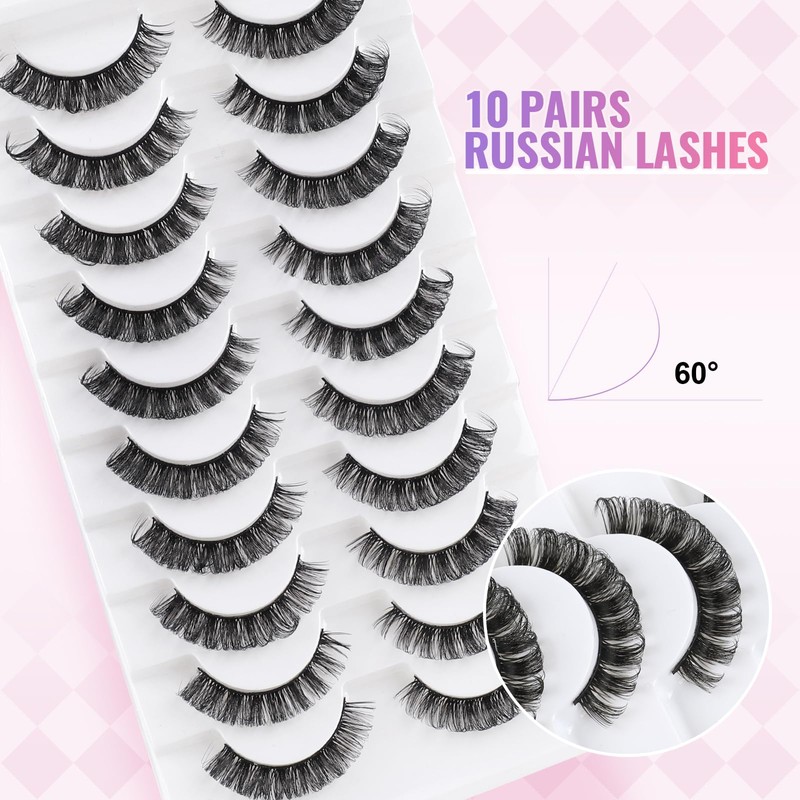 Glowing Win Russian Strip Lashes with Glue False Eyelashes Kit with 2 in 1 Bond&Remover 10 Pairs Hybrid Lashes Volume Cat Eye Lashes Natural Look