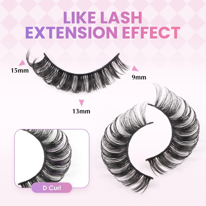 - Russian Strip Lashes Kit: The russian lashes with glue( 2in1 bond&remover) are very cost-effective. The russian eyelashes look so natural, very suitable for daily wear and give you very young and decent look.