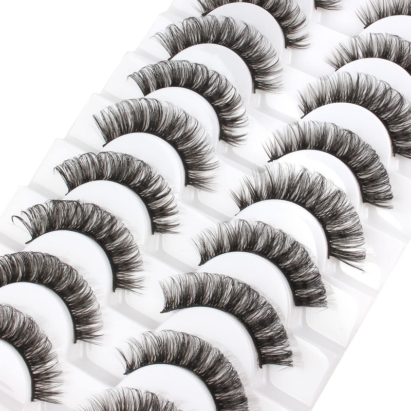 Glowingwin Russian Strip Lashes Volume 3D Hybrid Strip Lashes 10 Pairs Cat Eye Lashes Natural Look Russian Eyelashes Dramatic Fluffy D Curl Strip Lashes Handmade Fake Lashes Reusable False Eyelashes