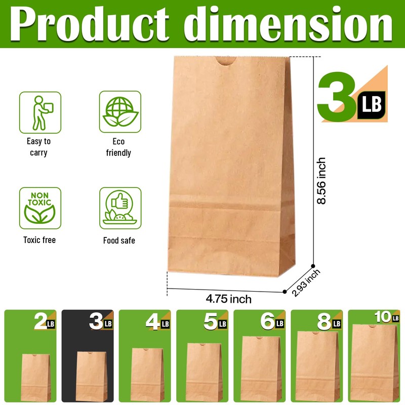 Glownary - White Paper Bags for Lunch, Craft, or Takeout. (3 LB, 500 Count - Brown)