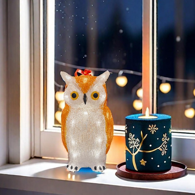 - Charming Design: Elevate your decor with this 22.5cm acrylic owl featuring 24 warm white LEDs. Its unique, handcrafted design adds a touch of elegance and originality, distinguishing it from ordinary decorations.