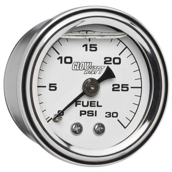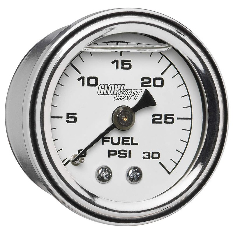 - GlowShift Liquid Filled Mechanical Fuel Pressure Gauge Installs Directly to the Fuel System Under the Hood & Reads Fuel Pressure from 0 to 30 PSI