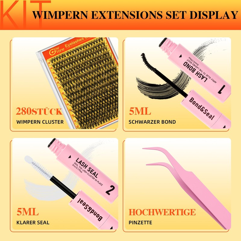 Glowvane Eyelashes Individual Kit 10-18mm, Cluster-Lashes Kit D Curl, Cluster Lashes with Lash Bond and Seal and Tweezers(40D V02)